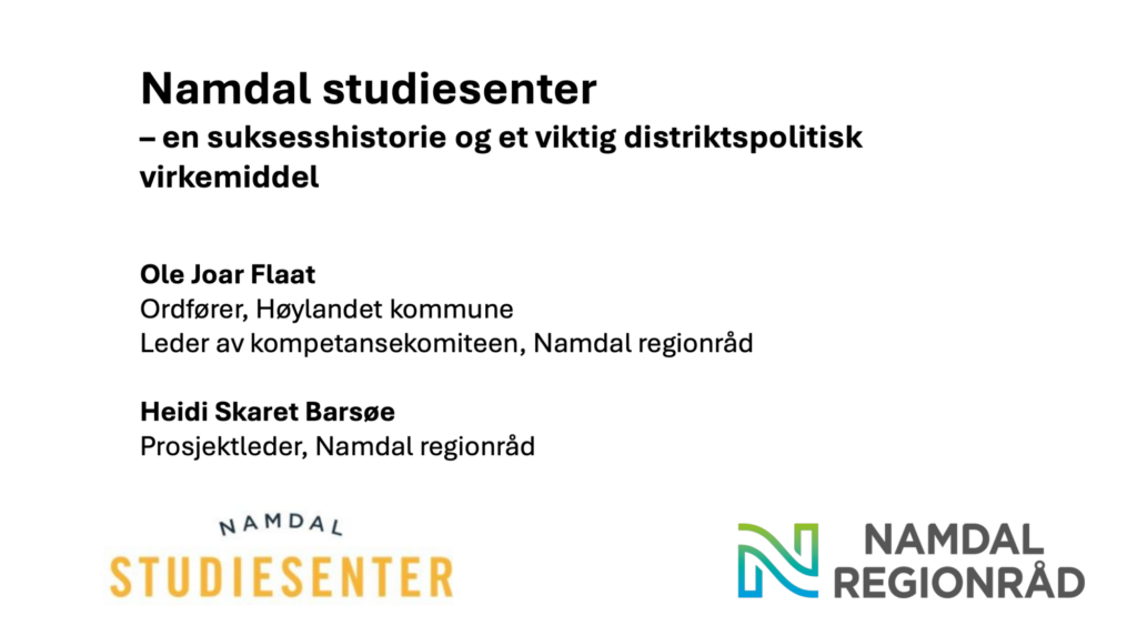 Møteleder: Amund Lein, Kompetansekomiteen i Namdal regionråd og ordfører i Namsos kommune.